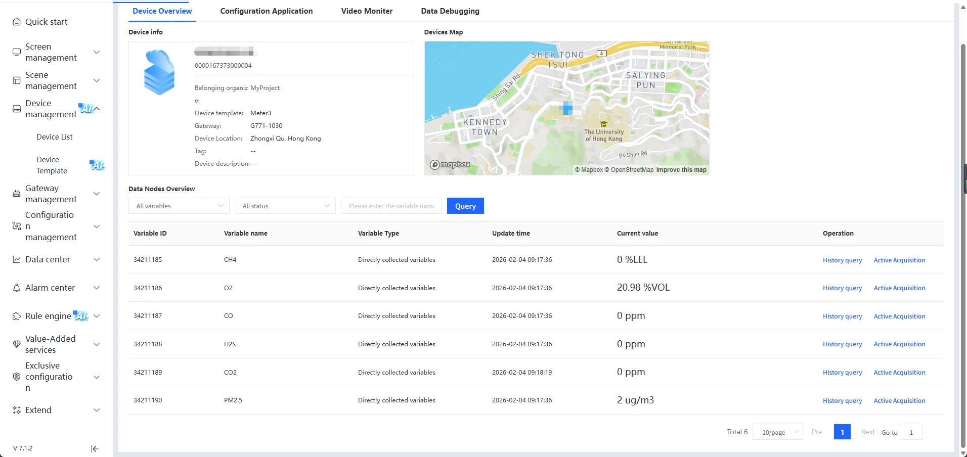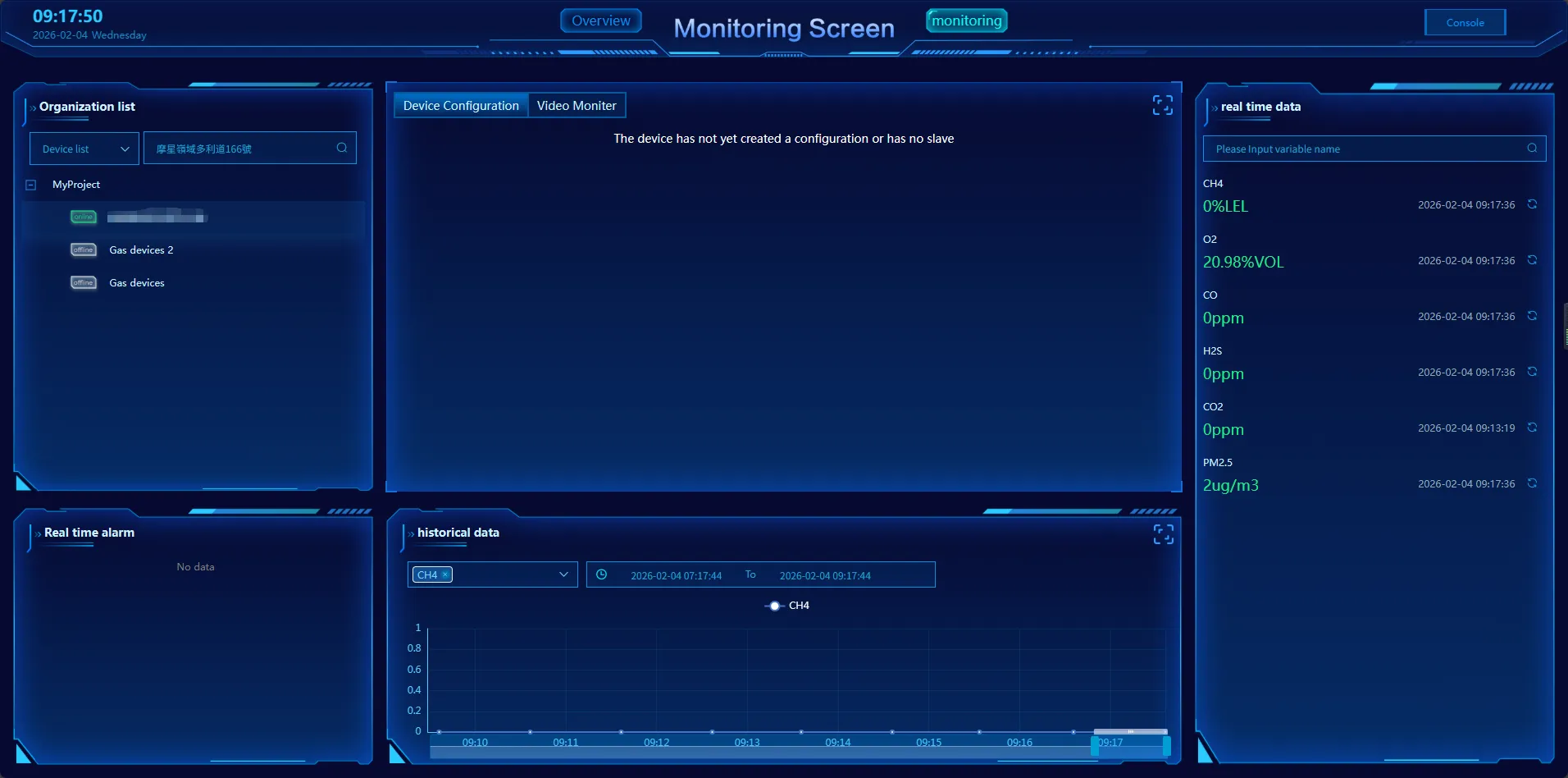 Read the real-time concentration of the gases and upload the data to a cloud platform. The frequency of data uploads (every X seconds or minutes) can be set, and a trend chart is generated for easy visualization.