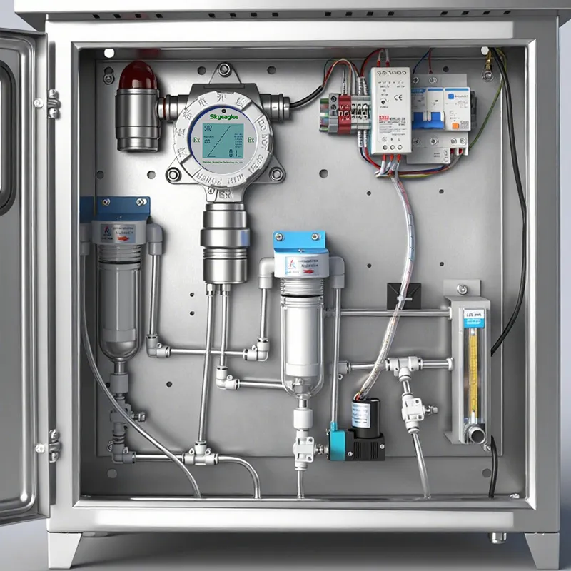 Main Functions: The sampled gas first passes through a filter to remove dust and impurities, then is drawn by a sampling pump to a flowmeter to control the gas flow rate (flowmeter rate is generally set at 0.3–0.5 L/min). Finally, the gas reaches the instrument for detection (the instrument’s operating environment must be within -20°C to 60°C). Water accumulated in the filter needs to be manually drained.