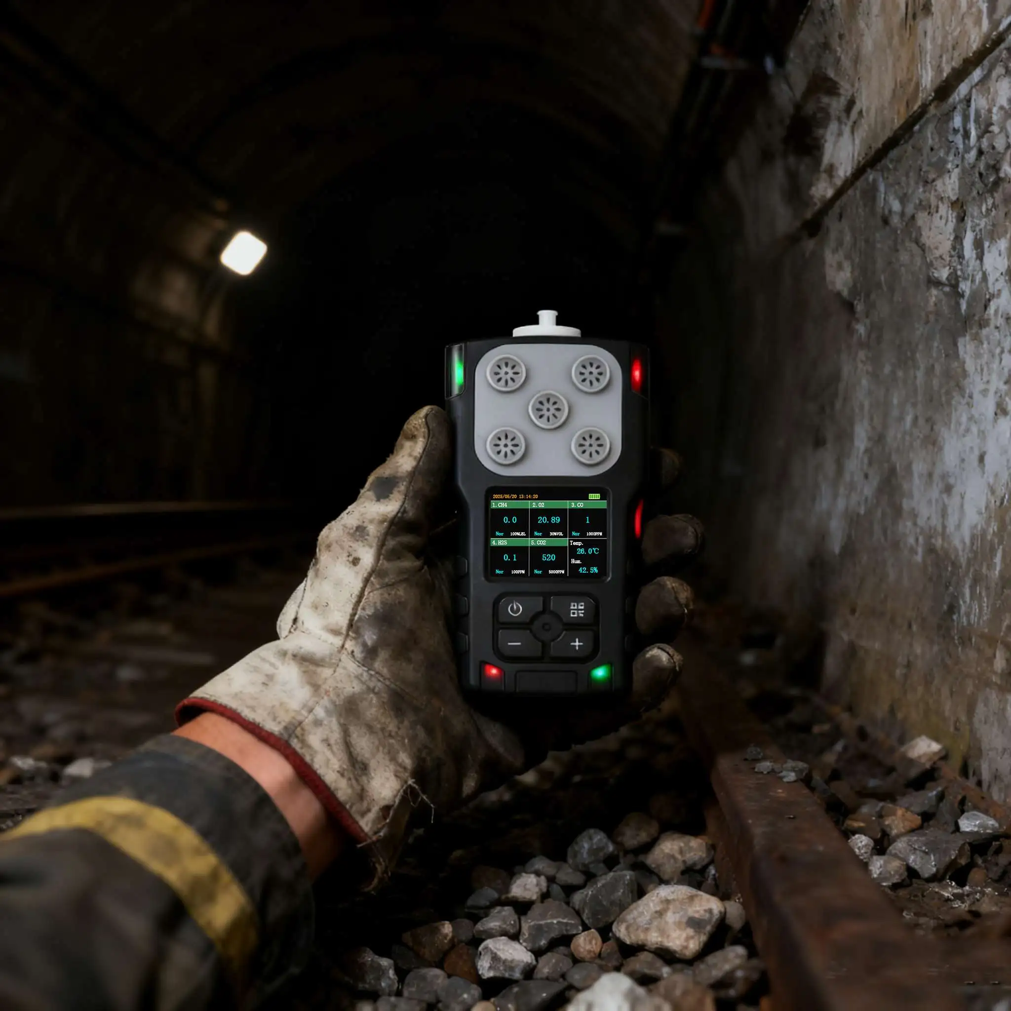 Oxygen is essential for human respiration, and the normal oxygen concentration in air is approximately 20.9% VOL. In mining areas and tunnel engineering sites, oxygen content can drop sharply due to multiple factors: first, the confined space structure leads to poor ventilation, making it difficult for oxygen to circulate and replenish; second, mining operations (such as blasting) and tunnel excavation processes consume a large amount of oxygen; third, the leakage of other gases (such as methane, carbon dioxide) in the stratum can dilute the oxygen concentration.