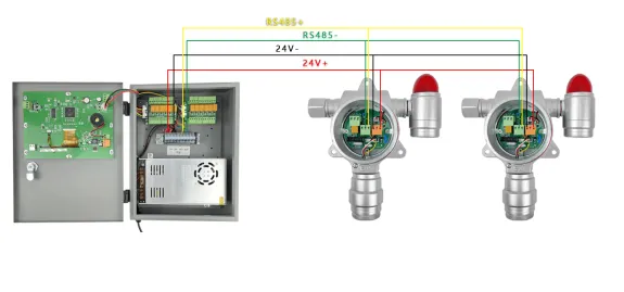 The Gas Alarm Controller is designed to work with standard 4-20mA current signals and RS485 bus signals for control and communication. It uses a high-performance microcontroller for reliable and stable operation. The controller connects to gas detectors to continuously monitor toxic and hazardous gases in the environment. It displays real-time gas concentration readings and supports communication with an upper computer via RS485. Users can set two-level alarm thresholds. When gas concentration exceeds the limit, the controller triggers audible and visual alarms based on the alarm level. Data logs, alarm records, system logs, and alarm channels can be queried via the menu. It also provides relay output to control external devices such as exhaust systems.