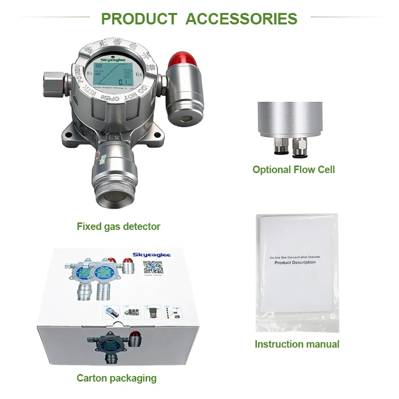 The detector should be installed at a height greater than 30 cm from the ground to prevent water from splashing in. Under normal circumstances, to detect harmful gases with a specific gravity less than that of air, the probe should be installed above the house or equipment; for harmful gases with a specific gravity greater than that of air, the probe should be installed close to the ground. The detector should be installed with the probe facing downwards. If it is installed outdoors, a rain shield should be installed above the detector.