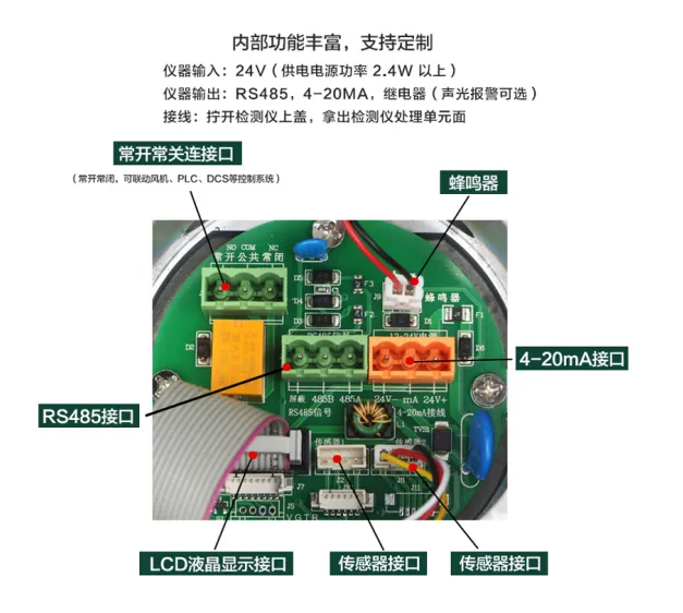 1. Detector detection principle: according to the demand range customization, and can provide customized products according to user needs, without tools to achieve sensor exchange, off-line calibration and zero self-calibration