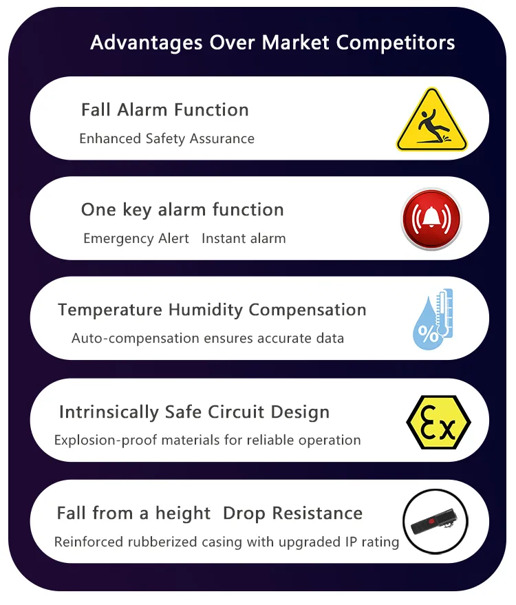 ✔️ Built-in internal sampling pump and diffusion sampling ✔️ Fall alarm / one-touch emergency alarm function. ✔️180° auto-rotating screen. ✔️Temperature & humidity compensation. ✔️Built-in buttons for easy parameter viewing and configuration. ✔️Features an external USB port for data export and deletion via USB cable connection to a computer. ✔️ Equipped with a 32-bit microprocessor and high-speed, high-precision processing circuitry for fast and accurate measurements. ✔️PC+TPU (rubber overmolding process) for impact resistance. ✔️Handheld and small design, easy to carry, can be put in a pocket. ✔️High-intensity ABS engineering plastics housing, suitable for different kinds of situations. |