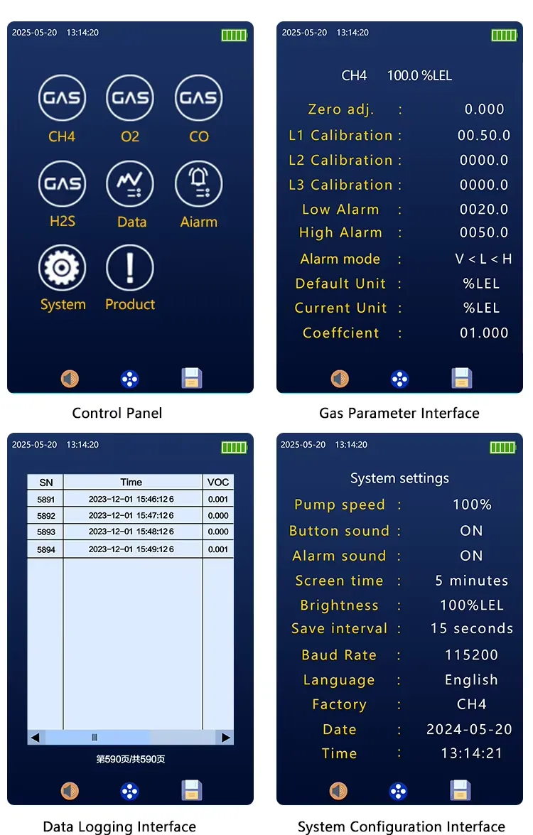 The Gas Alarm Controller is designed to work with standard 4-20mA current signals and RS485 bus signals for control and communication. It uses a high-performance microcontroller for reliable and stable operation. The controller connects to gas detectors to continuously monitor toxic and hazardous gases in the environment. It displays real-time gas concentration readings and supports communication with an upper computer via RS485. Users can set two-level alarm thresholds. When gas concentration exceeds the limit, the controller triggers audible and visual alarms based on the alarm level. Data logs, alarm records, system logs, and alarm channels can be queried via the menu. It also provides relay output to control external devices such as exhaust systems.