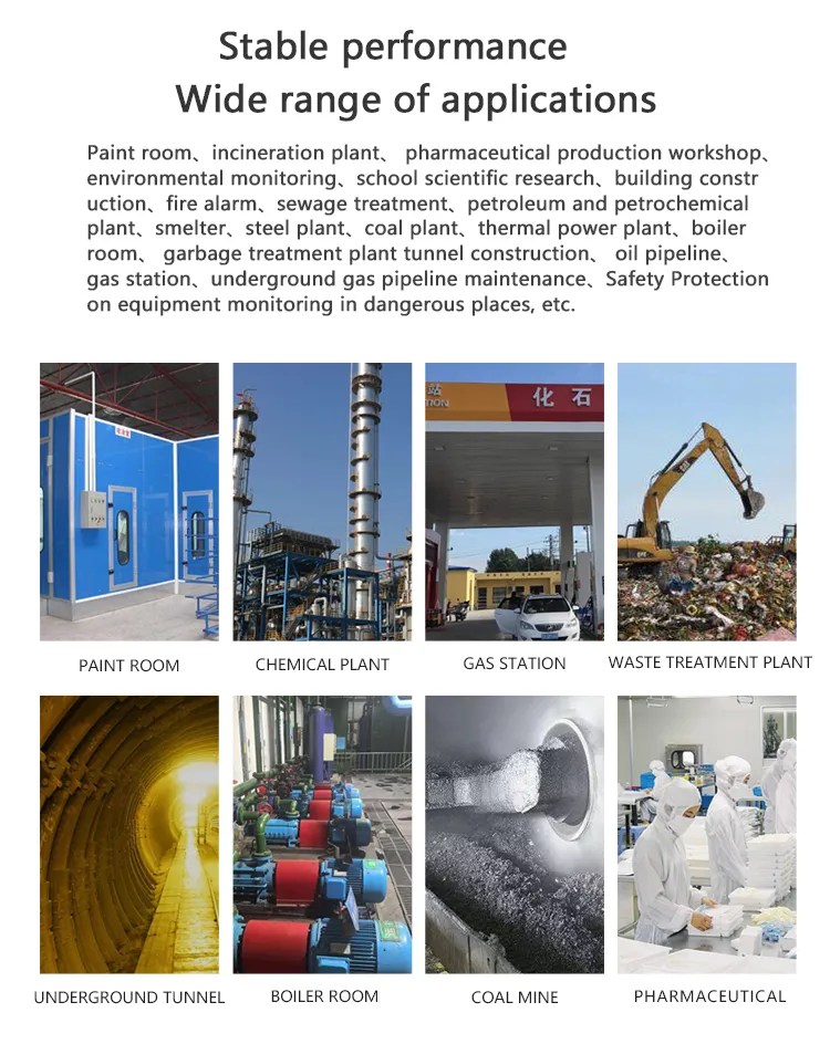 Measurement object: CO2/Ex/CH4/CO/H2S/O2/N2/NH3/CL2/H2/He/Ar/CH2O/O3/NO/NO2/SO2/C2H4O/PH3/COCL2/HBR/HCL/HCN/CLO2/SIH4/CH3BR/SO2F2/F2/HF/C2H2/CS2/SF6/C2H4/C2H6O/H2O2/VOC/PM/RH