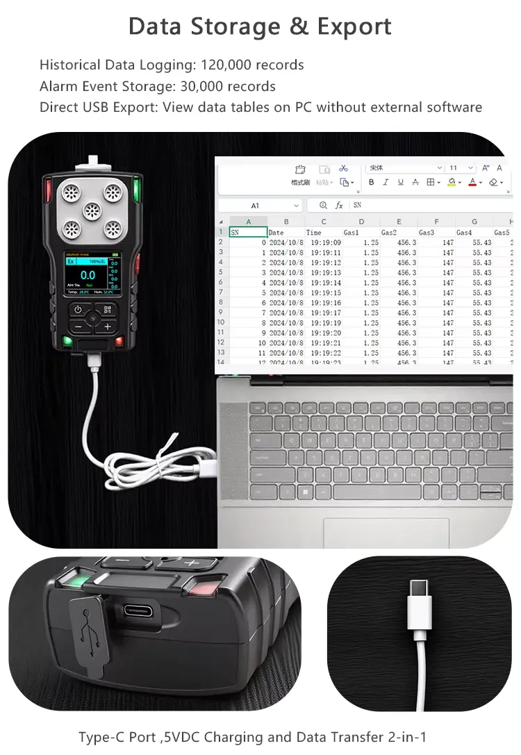 | Output | Reserve a USB interface externally and use a USB cable to communicate with a computer to achieve data export and deletion | 4G, LORA, Bluetooth | |