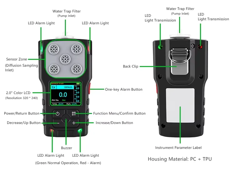 | Measure gas | Combustible gas/Oxygen/carbon monoxide/hydrogen sulfide/carbon dioxide (customizable) | Detection principle | Catalytic combustion/infrared NDIR// electrochemistry |